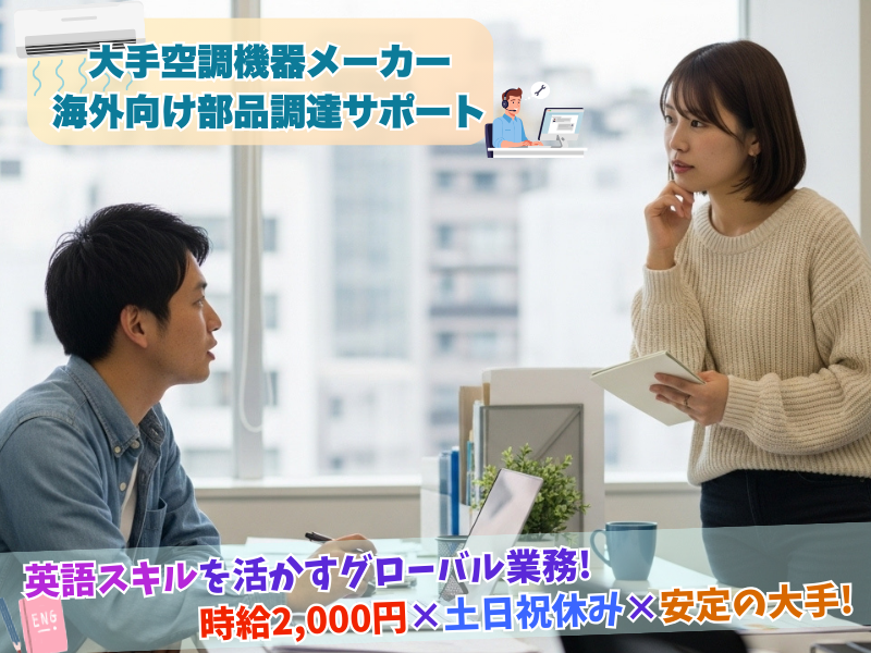 \✨ 時給2,000円×土日祝休み×安定大手 ✨/ 英語スキルを活かすグローバル業務/部品調達サポート
