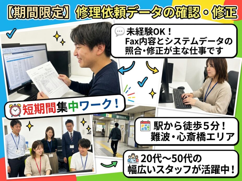\✨5/7〜9月末まで!短期でしっかり稼ぐ✨/ 💻 修理受付データのチェック・修正