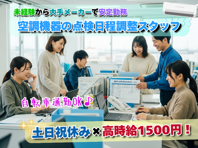 \未経験から大手メーカーで安定勤務✨/ 土日祝休み×高時給1500円!エンジニア調整や日程連絡メインのオフィスワーク📞
