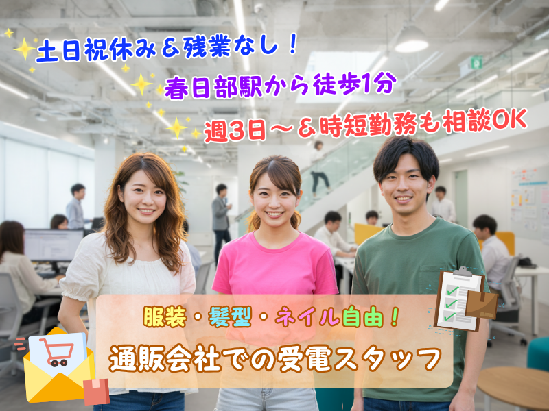 マニュアル通りの受電スタッフ/コールセンターなのに土日祝休み+残業なし*服装/髪色/ネイル自由*交通費/残業代別途支給あり
